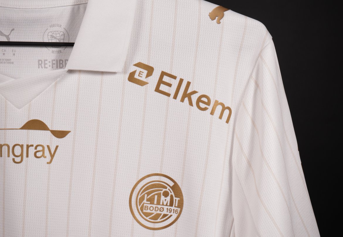 Søndag kveld gjester Bodø/Glimt Åråsen og Lillestrøm til kamp i Eliteserien. I den anledning stiller Bodø/Glimt for aller første gang i årets nye bortedrakt. Drakten, som er stilren og elegant er hvit med kremhvit shorts og strømper. Logoene på drakten er alle i samme farge.