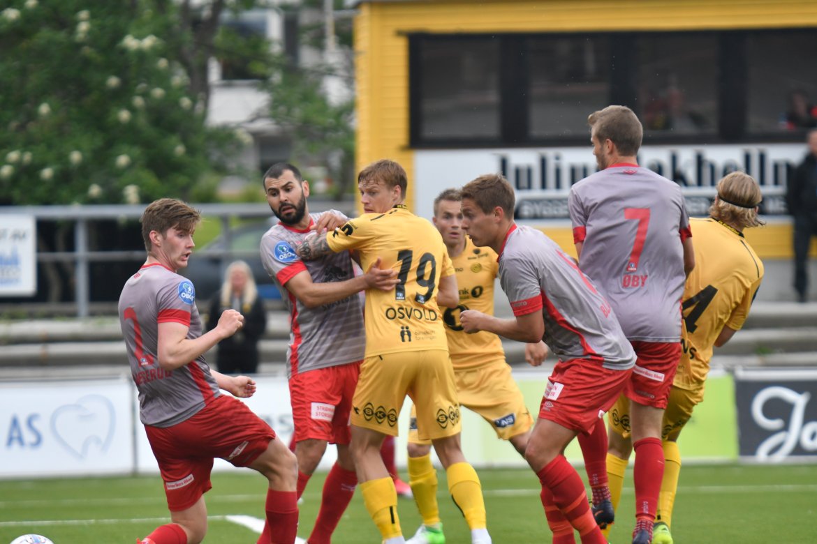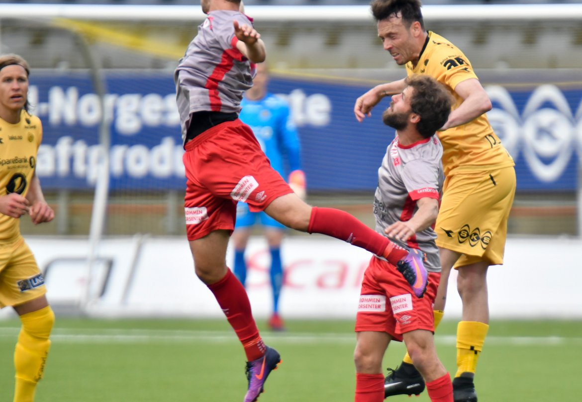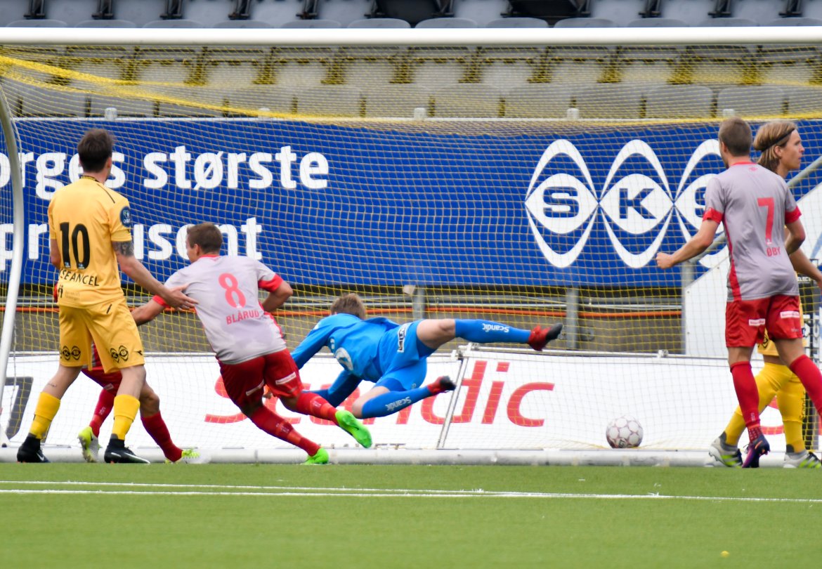 Kampen startet på verst tenkelig måte da Strømmen tok ledelsen etter seks spilte minutter. Bortelaget fikk frispark rett utenfor sekstenmeteren, og med en millimeterpresisjon plasserte Olav Øby ballen i krysset bak en utspilt Ricardo Friedrich. Det skulle gå 15 minutter før det skulle bli ordentlig hett på Aspmyra. En Strømmen-spiller handset i feltet, og Saltnes fikk prøve seg fra ellevemeteren. Straffen ble reddet av tyskeren i buret, og returen sendte Jose Angel over mål.