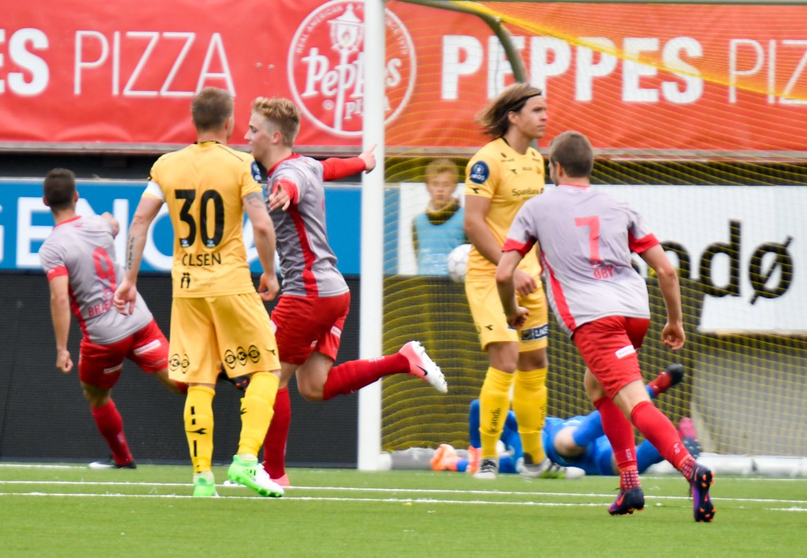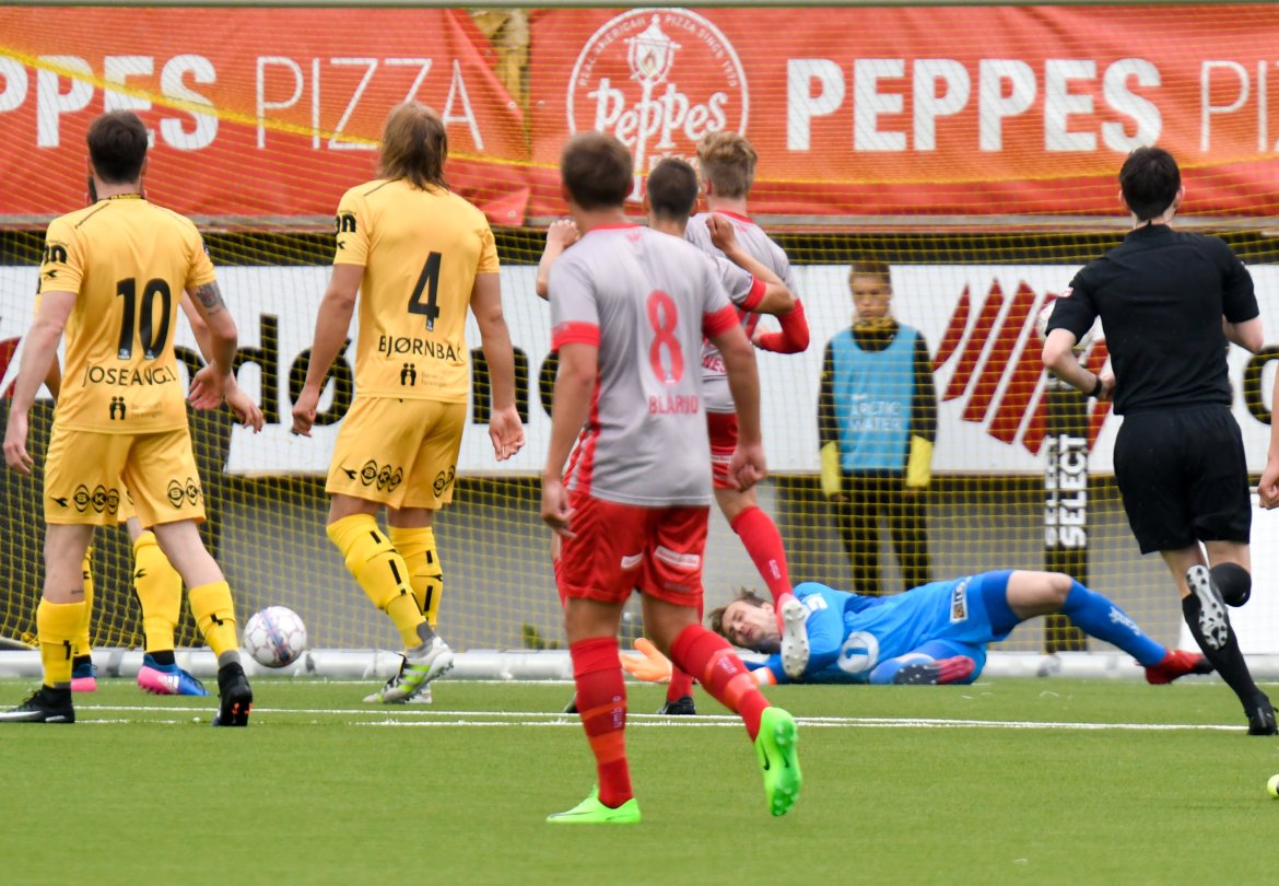 Det skulle derimot kun ta åtte minutter før ballen igjen lå i nettet bak vår brasilianske burvokter. Midtbanespiller Mathias Blårud knuste glimtforsvaret i en hodeduell, og sendte ballen i en bue over Ricardo. Nå så det mørkt ut for Glimt, og de helgule måtte ofre alt for å få med seg noe fra denne kampen.