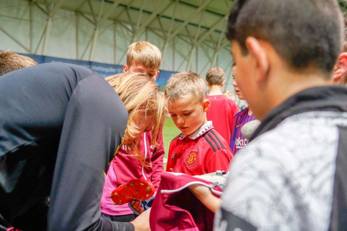 – Det er selvfølgelig ekstra stas for dem når spillere fra A-laget tar seg tid til å komme innom. Det var tydelig at flere av barna fikk et ekstra gir da A-lagsspillerne stod og så på. Ikke minst er det fint at de tar seg tid med hver enkelt spiller når de først tar turen innom. Vi ser at det inspirerer, fortsetter han videre.