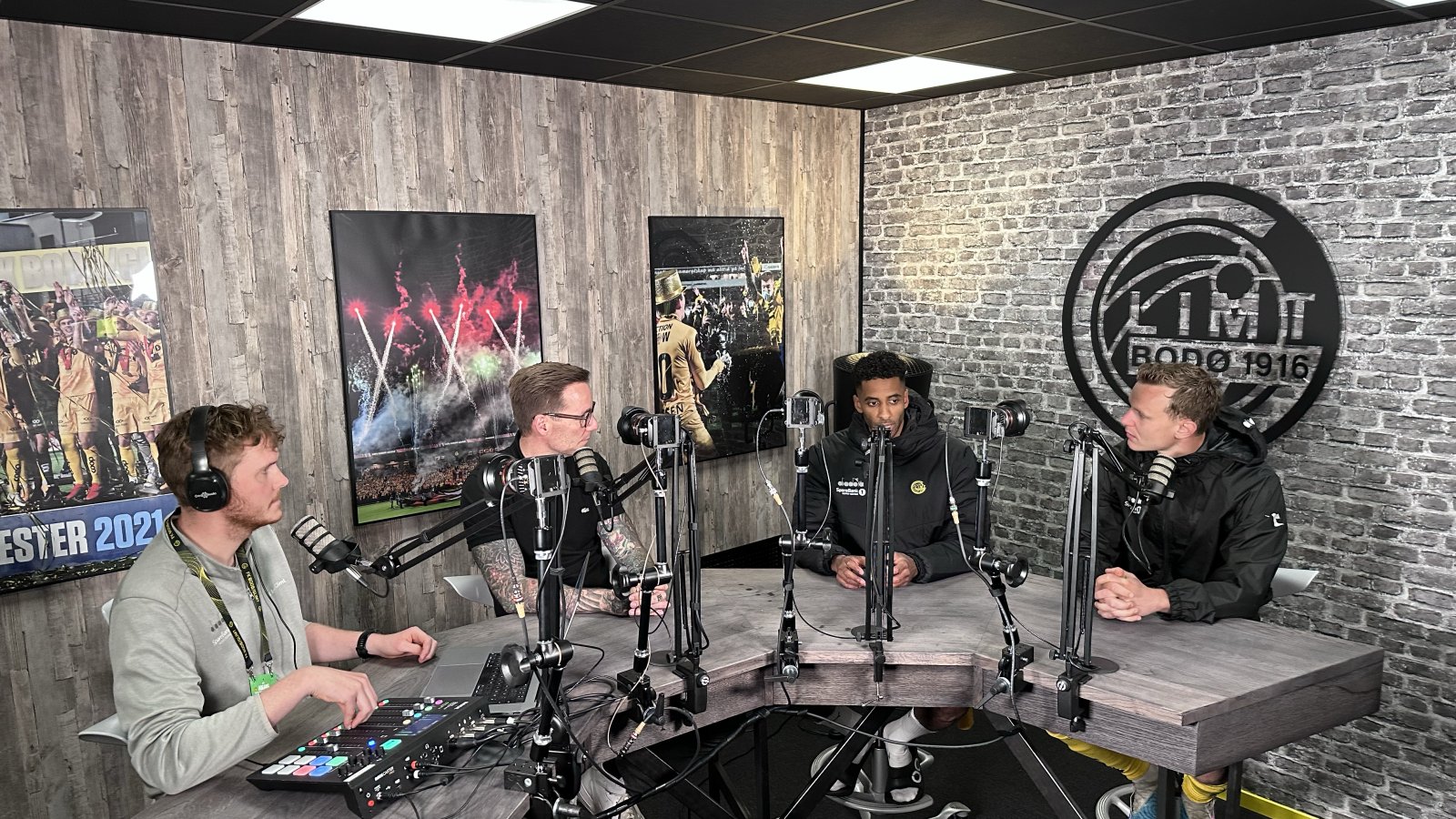 Programleder Niklas Aune Johnsen har med seg Erlend Osnes og aktuelle spillere og trenere etter hjemmekampen mot Bohemians i den andre runden av kvalifiseringen til UEFA Europa Conference League.