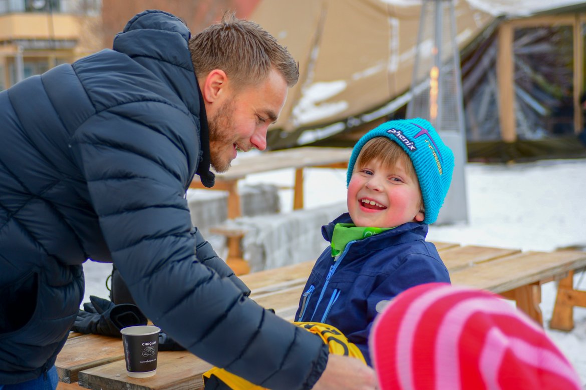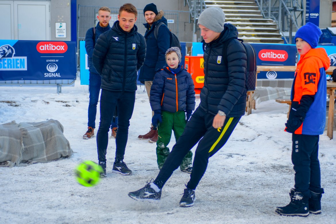 Før avspark mot Lillestrøm var de to guttene Adrian og Lukas noen av de svært aktive i konkurranser og drikking av kakao.