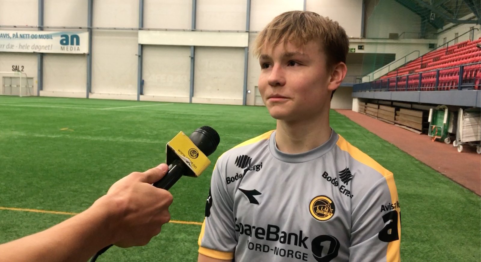 Den spennende unggutten Andreas Schjelderup ble intervjuet av Ulrik Saltnes etter internkampen. Video