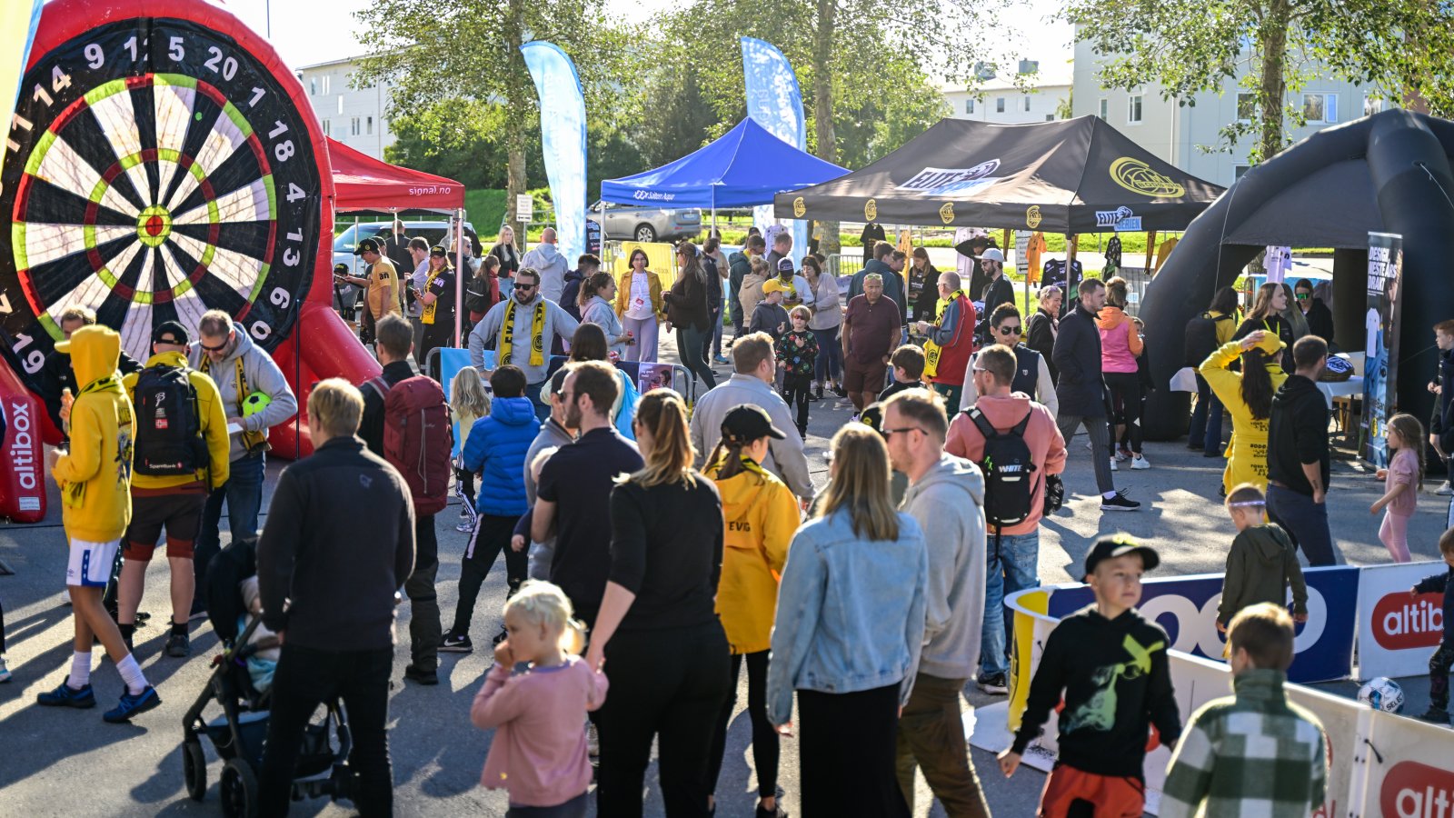 Fanzone før Molde-kampen på Aspmyra 2022. Fanzone+. FIFA-turnering i Elkjøp-teltet.