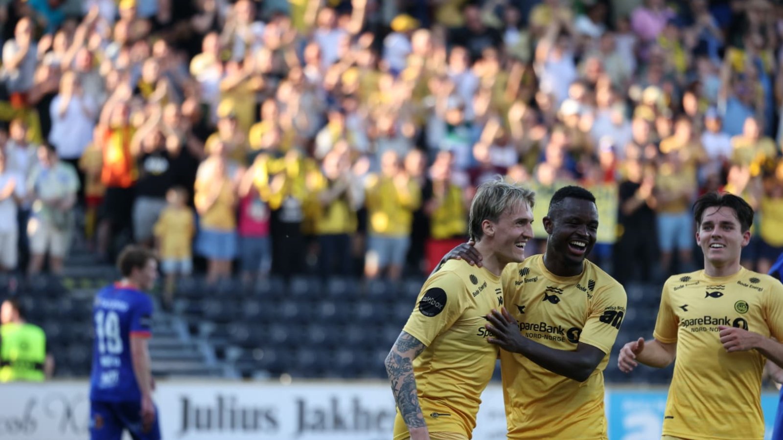 Brice Wembangomo og Bodø/Glimt kunne smile bredest etter seieren på Aspmyra A-lag Herrer