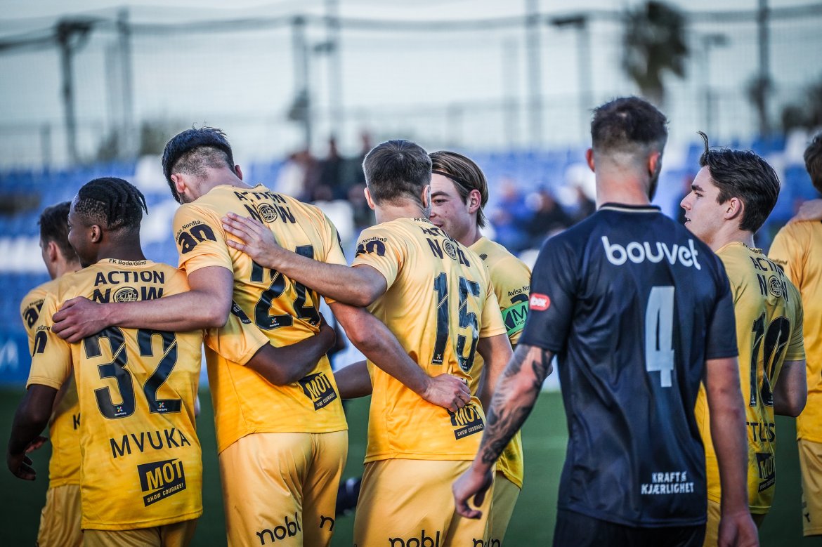 Glimt trakk det lengste strået i årets første treningskamp i Spania. Det ble en kamp uten de store sjansene eller hendelsene. De helgule avgjorde på straffespark i andre omgang etter at Lasse Nordås kontrollert skle ballen i mål.