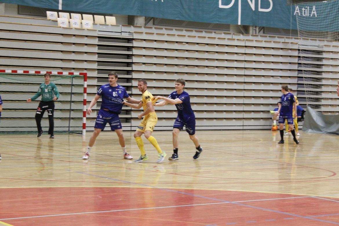 Håkon Evjen ble den store spilleren i det som endte 14-0 til de helgule. Et godt utgangspunkt før håndballkampen.