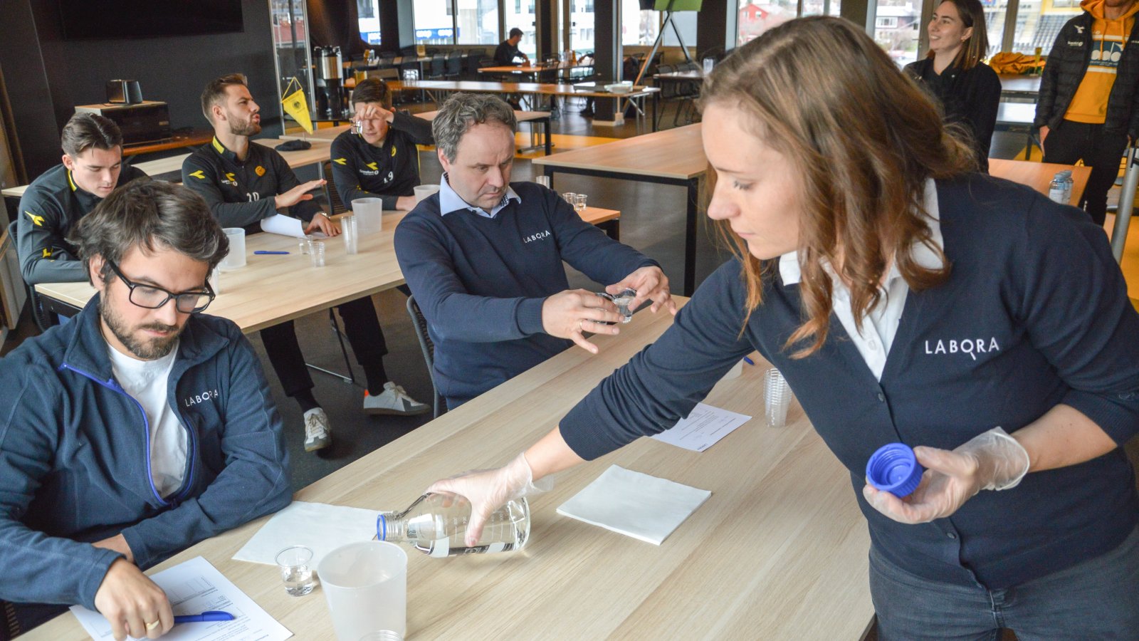 Av Laboras 30 ansatte er åtte trent i å lukte og smake på drikkevann. Dette betyr at de alle kan smake følgende fire grunnsmaker; surt, salt, søtt og bittert. I tillegg kjenner de etter om vannet smaker andre smaker som myr og jord.