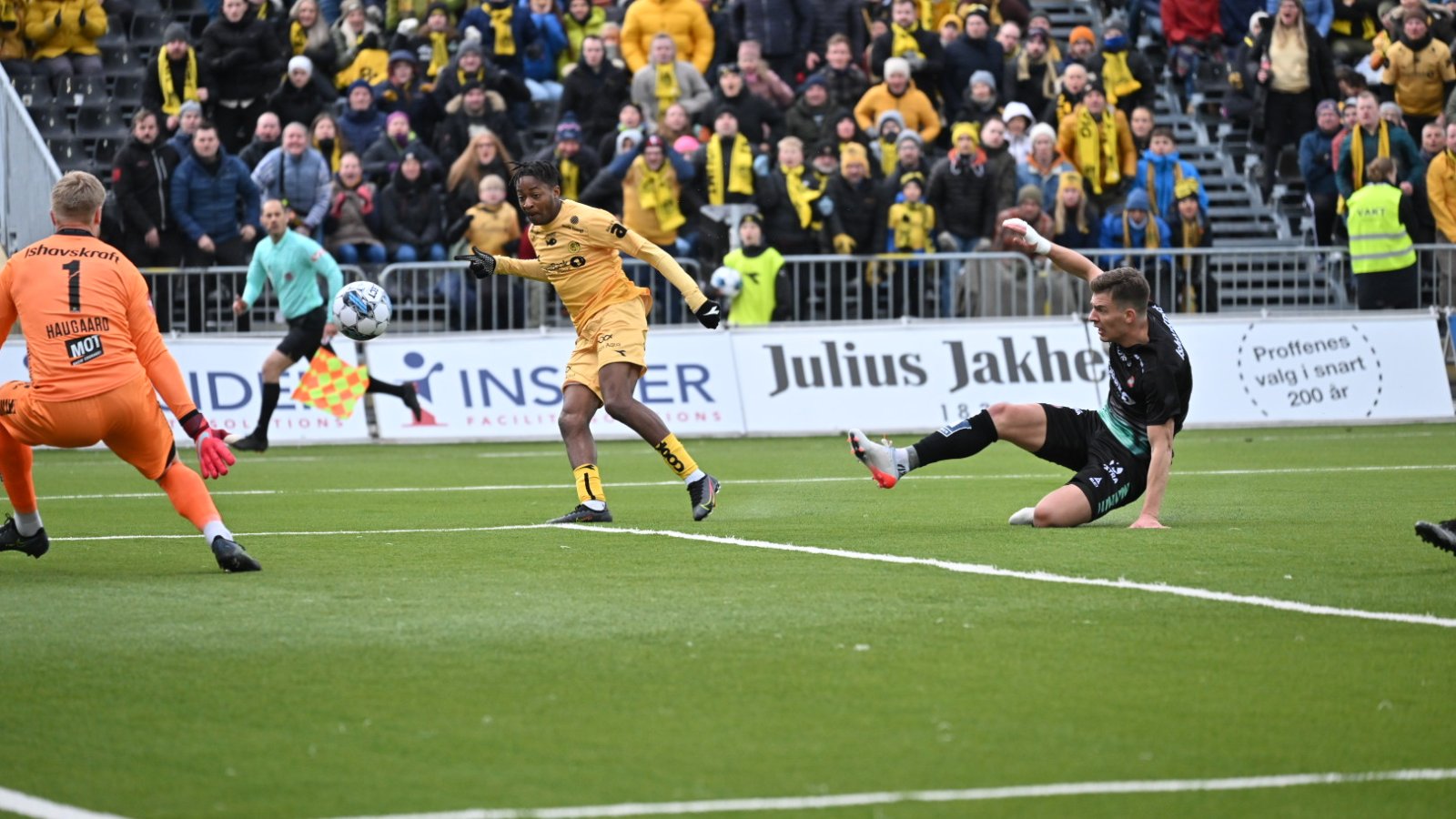 Victor Boniface fant Joel Mvuka med en lekker pasning og den unge bergenseren gjorde ingen feil alene med keeper. En nydelig scoring og poengdeling på Aspmyra.
