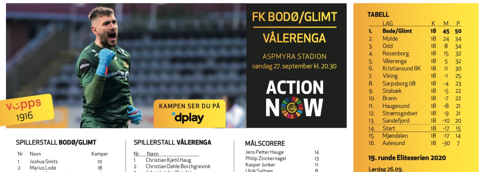 Vi fortsetter å ha kamparkene digitalt i 2020! Derfor blir kamparkene lagt ut på nett før kamp. Allerede nå kan du se, laste ned eller printe ut kampark før søndagens kamp mot Molde. Klikk på linken under: