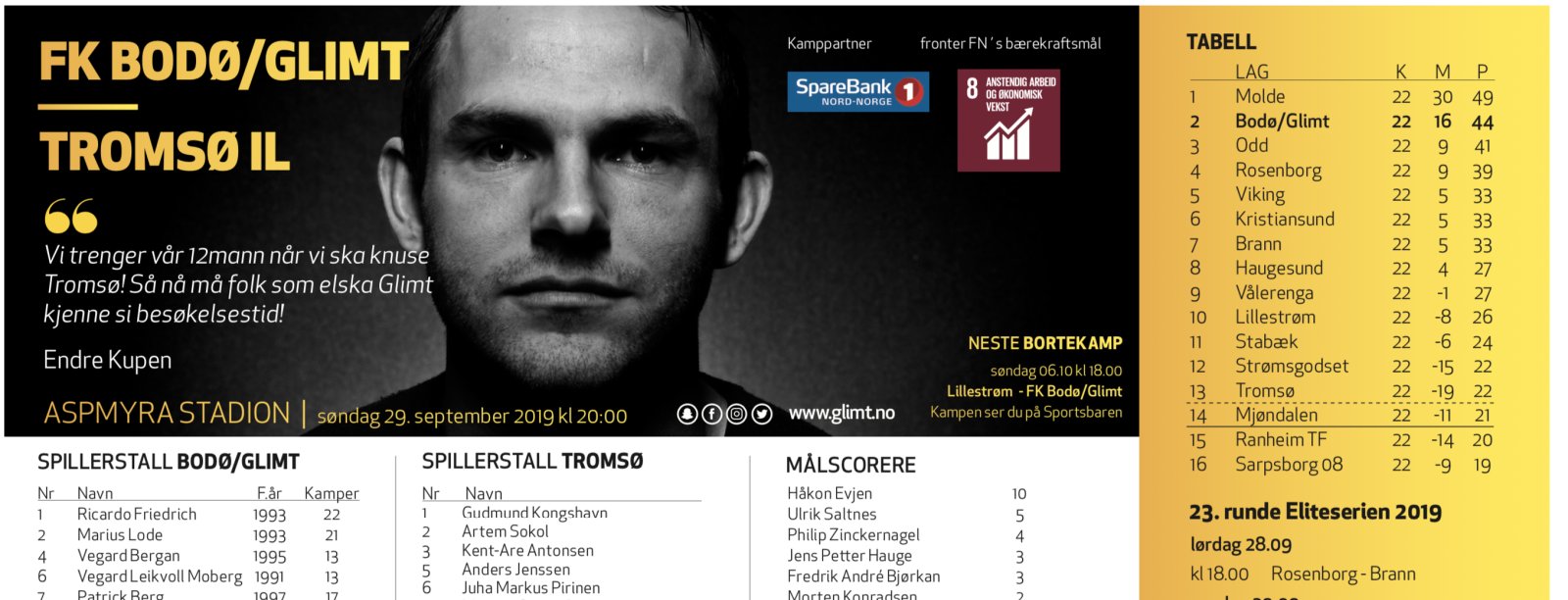 Bodø/Glimt kutter ned på papirbruken, og kamparkene blir lagt ut på nett før kamp. Allerede nå kan du se, laste ned og printe ut kampark før slaget om Nord-Norge på søndag. Klikk på linken under: