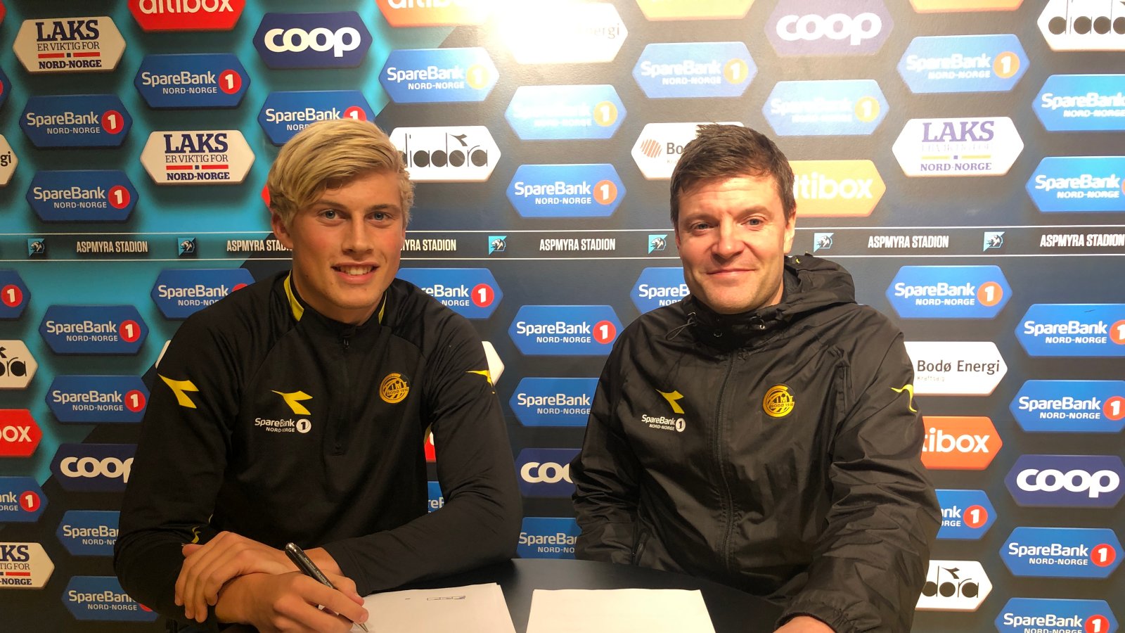 Martin Mjelde (18 år) spilte sine første år i IK Grand, før han som 13-åring kom til Glimt. Nå har han signert sin første proffkontrakt.