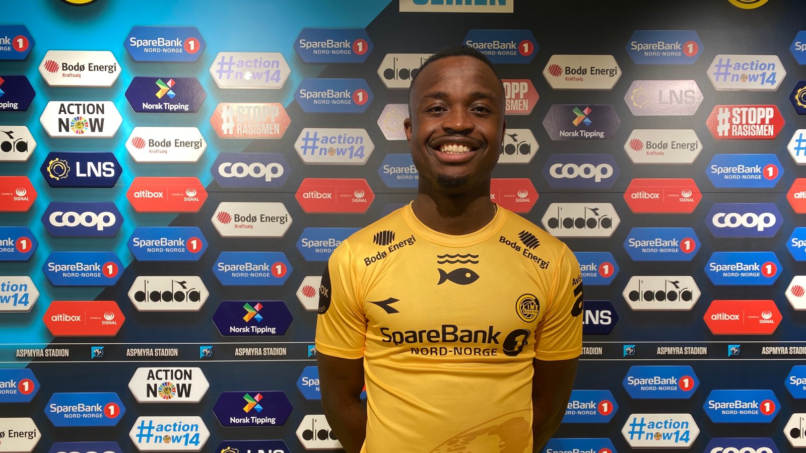 – Dette blir et bra steg for meg. Jeg tror dette kommer til å passe meg veldig bra. Jeg har snakket med Kjetil om hvilken type fotball vi spiller, og det blir bra for meg å få spille den fotballen jeg selv liker å spille, sier Wembangomo på sin første dag som Bodø/Glimt-spiller.