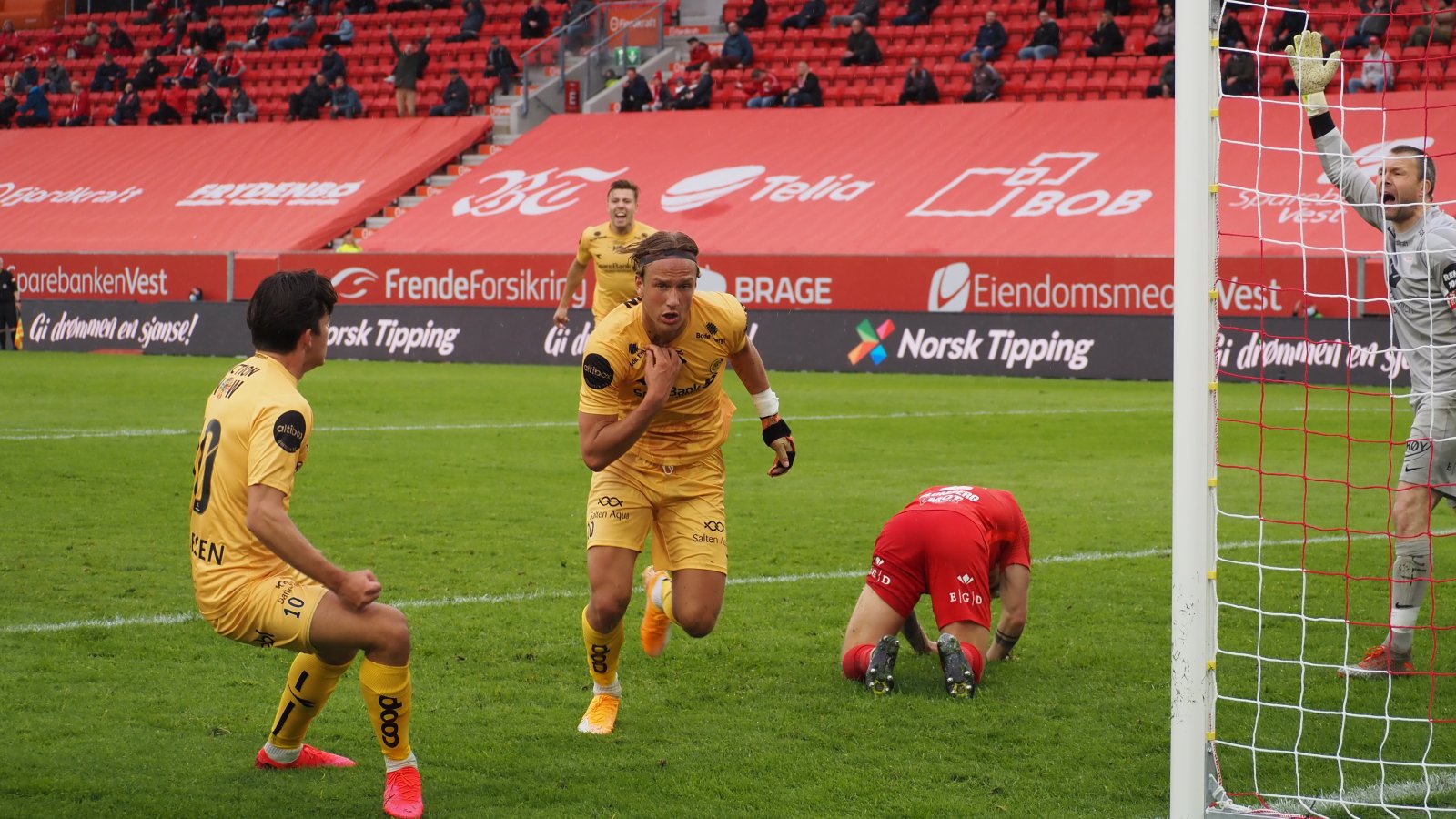 Det ble som forventet en tett og jevn kamp mellom Glimt og Brann i Bergen, og det måtte en spiss i knallform til for å skille lagene.