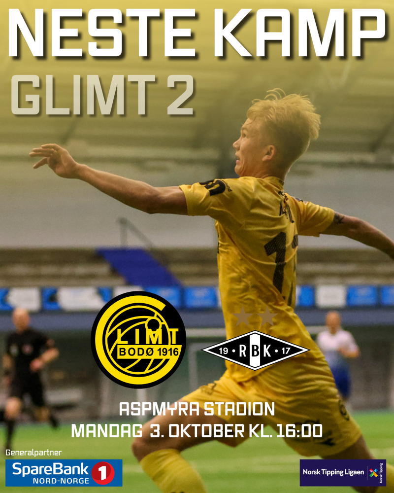 Mandag 3. oktober kl. 16:00 tar Glimt 2 i mot Rosenborg 2 på Aspmyra Stadion.