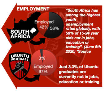 Hele 58 prosent av alle mellom 15 og 24 år i landet er arbeidsledige, men blant de som er uteksaminert fra Ubunutu er arbeidsledigheten helt nede på 3 prosent.