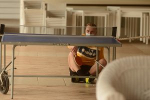 Det er ikke bare bare å tape i bordtennis mot lagkameratene for Marius Lode.