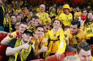 Bli med tilbake til London hvor rundt 3500 supportere farget byen gul.
